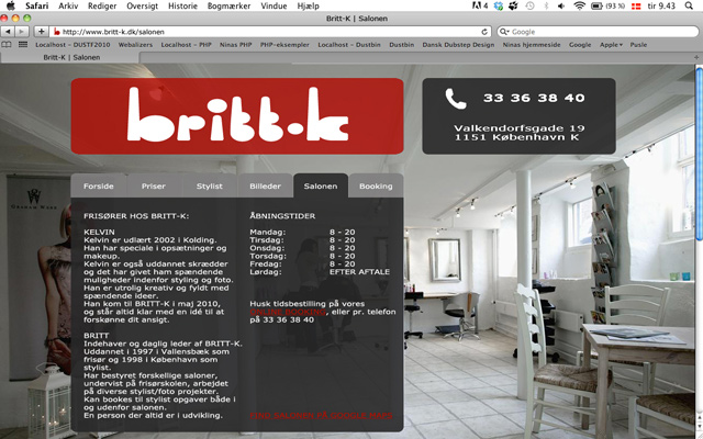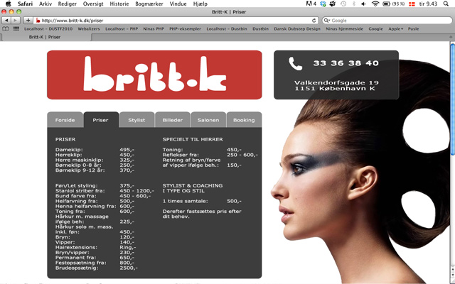 During a course in Graphic Design at ITU one of the assignments was to redesign the website of the hairdresser “Britt-K”.
